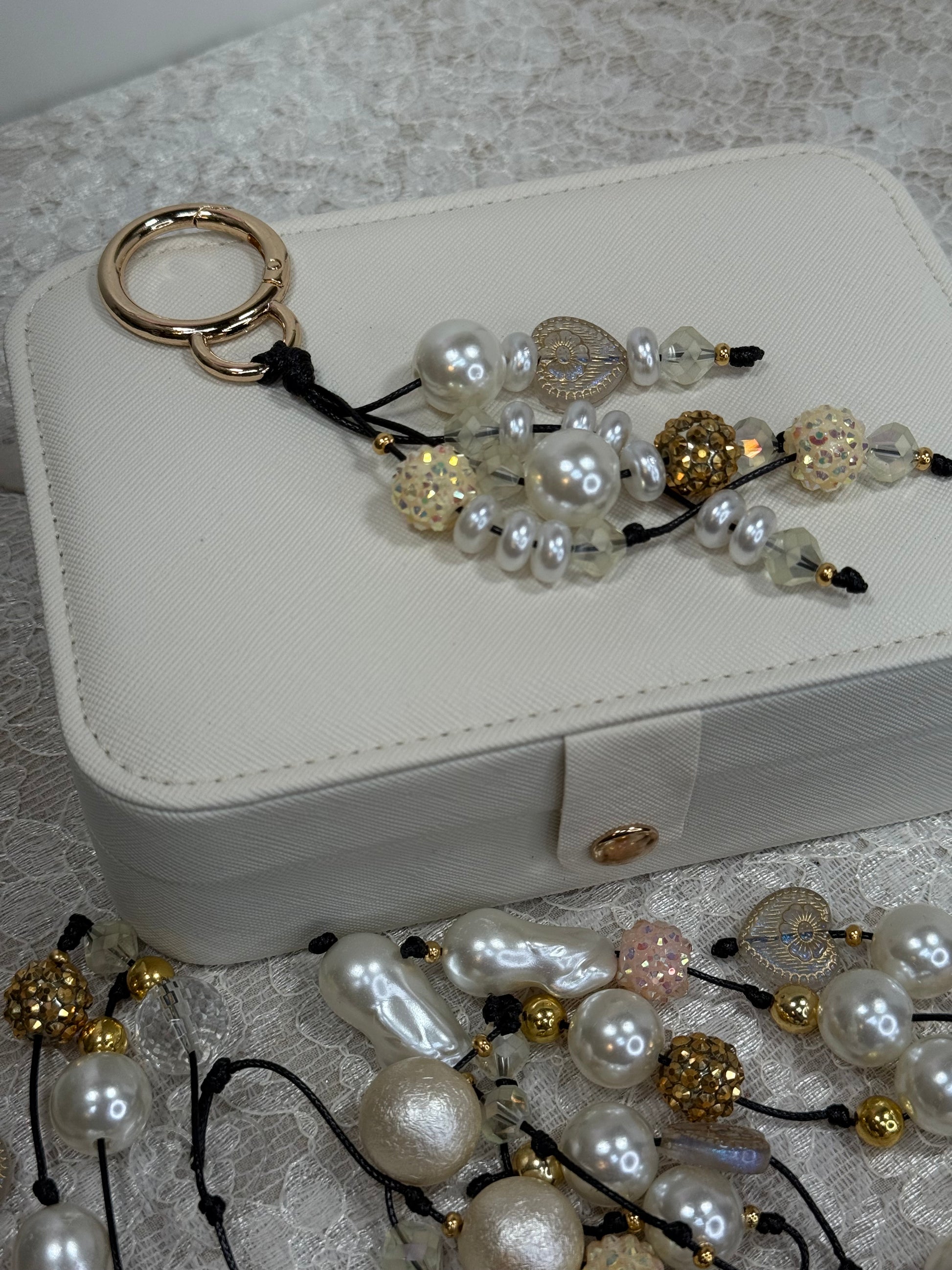 Dale el toque perfecto a tus carteras, bolsos o bultos. Un poco de “bling” y perlas. No necesitas nada más. Acrílicos + cristal + perlas