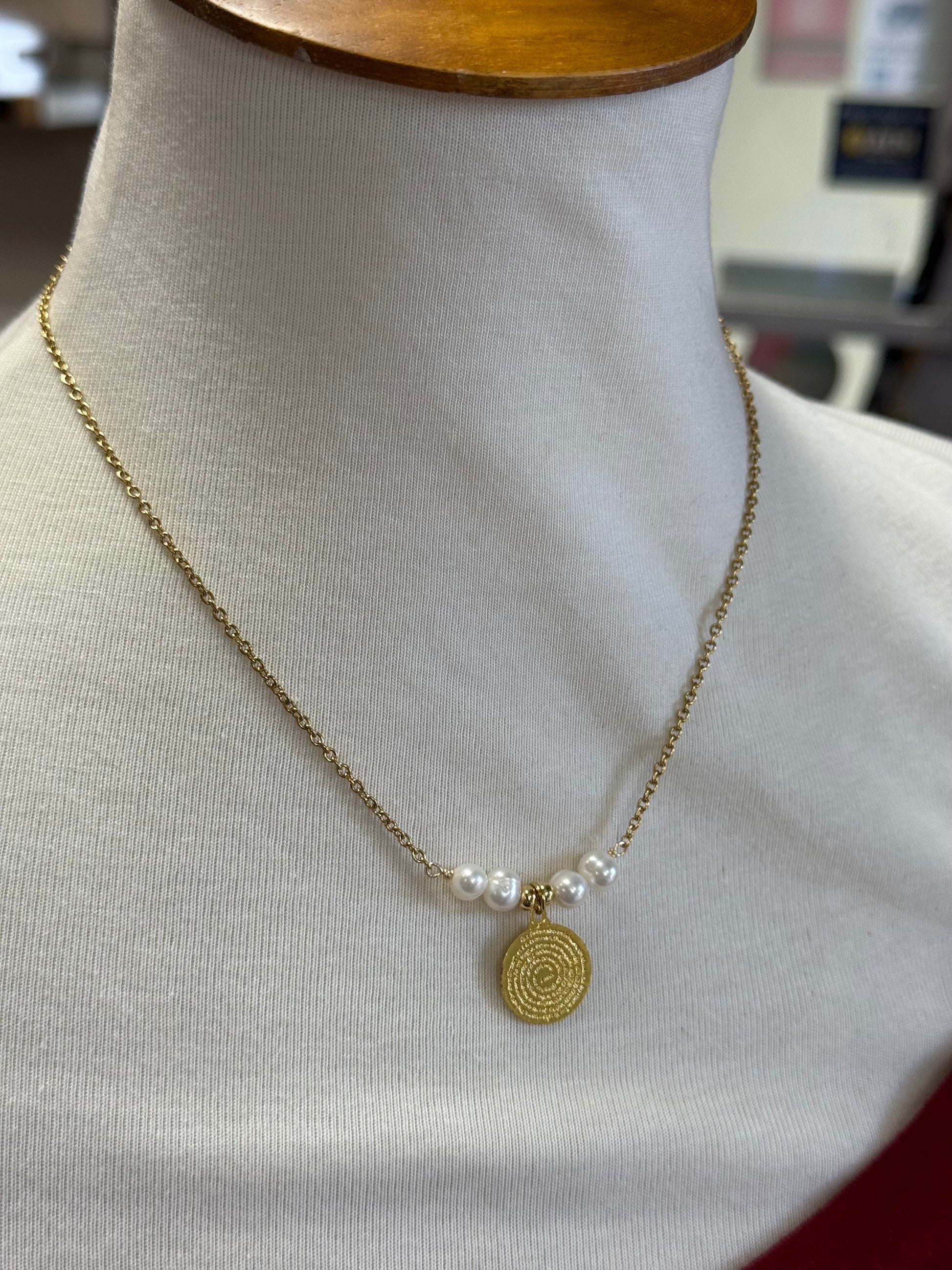 Cadena stainless steel + 16” + Perlas + charm gold filled