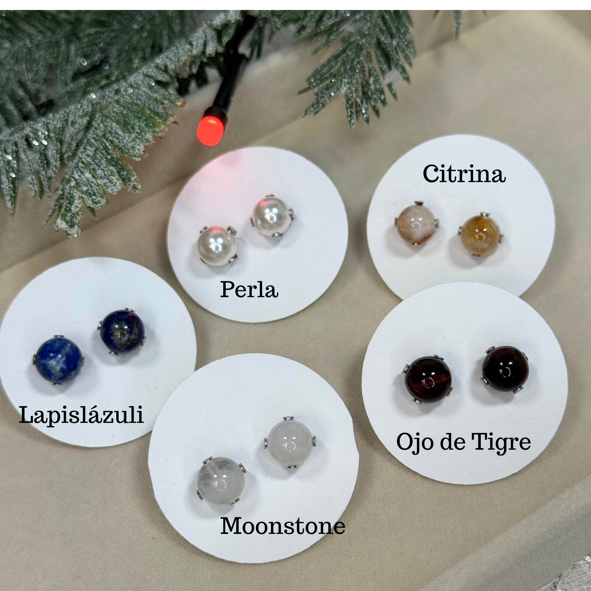 citrina, lapislázuli + perla + ojo de tigre + moonstone