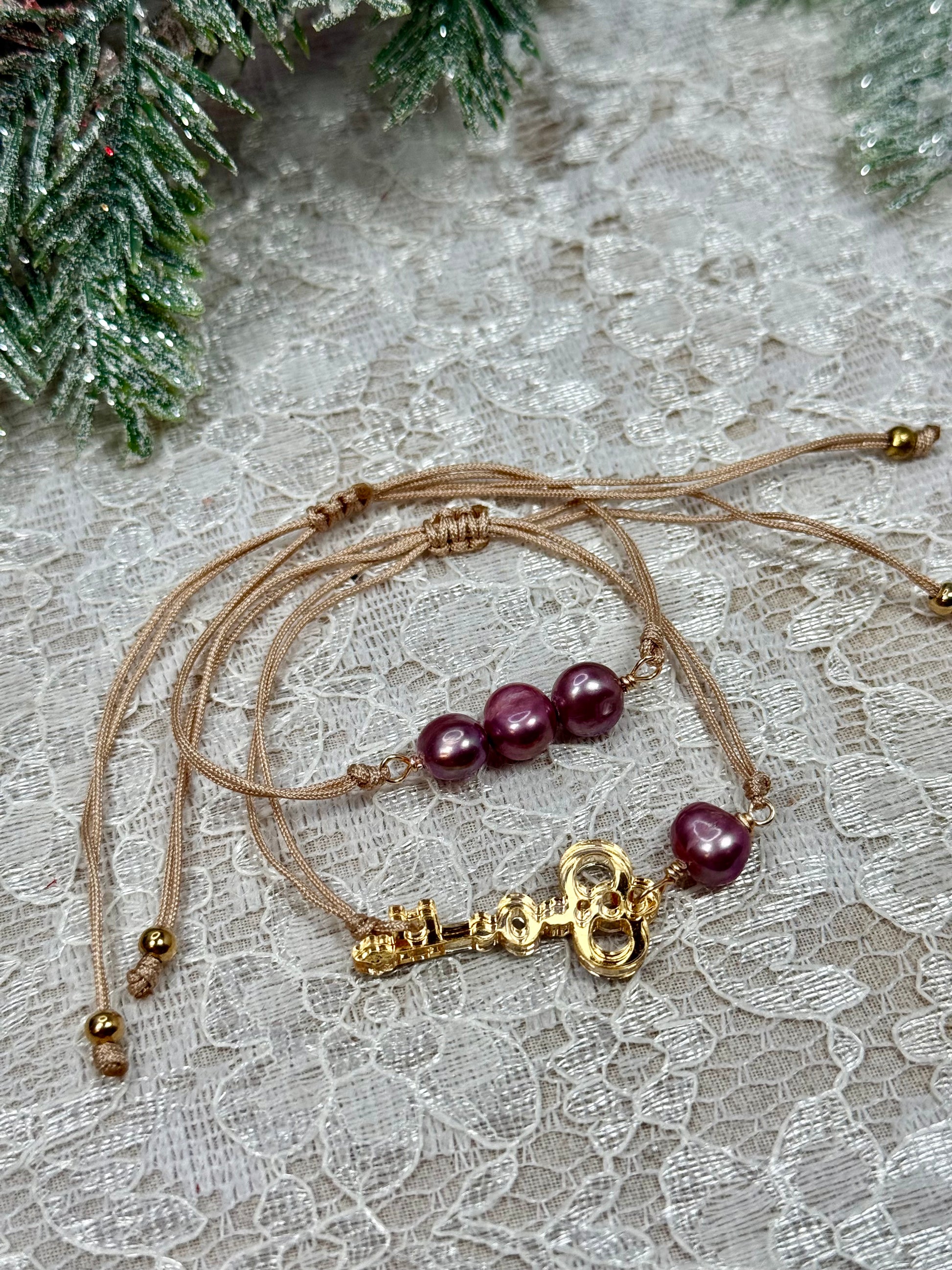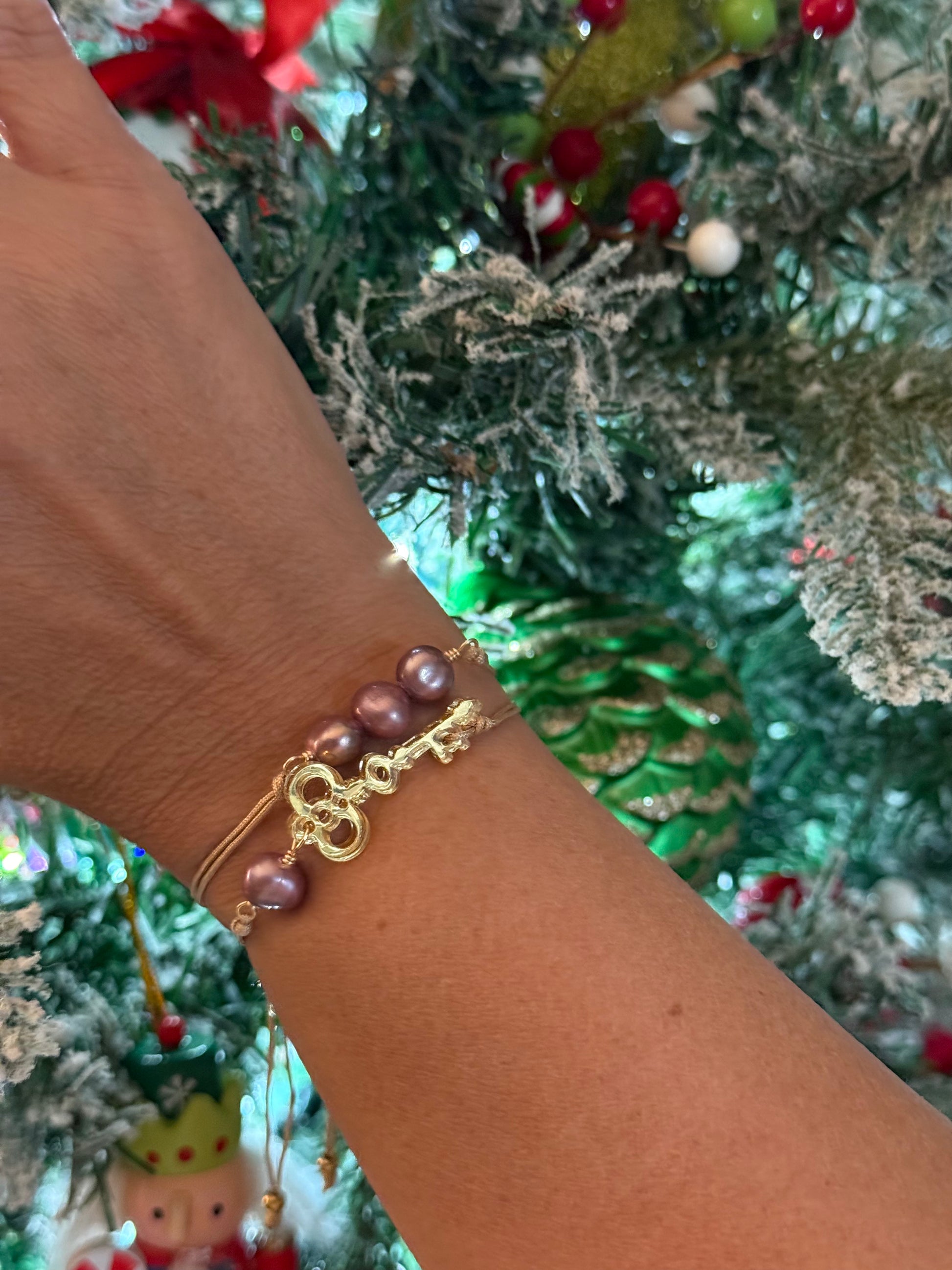 Una pulsera delicada que combina la suavidad de las perlas con el simbolismo de la llave.