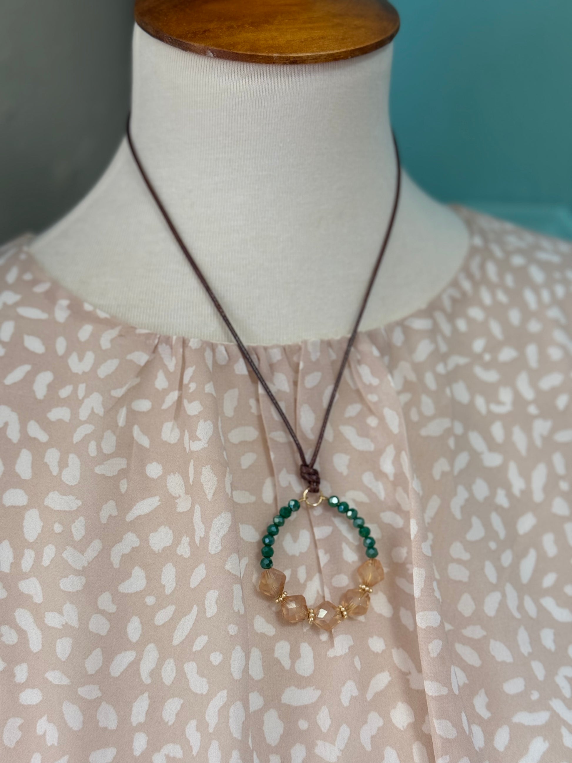Collar ajustable + cristal + cordón marrón ( nylon)